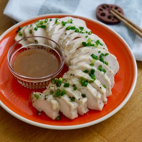 ジップロックで簡単サラダチキン♪練り梅ダレで